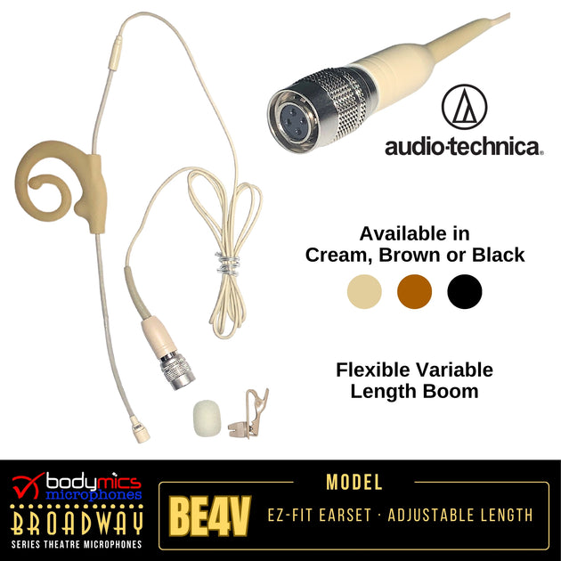 (A2) BE4V-ATcW for Audio-Technica (AT) 3/16" Omni Flexible Adjustable Length Boom Earset Mic - Cream or Black Fixed Cable (Bodymics Broadway)
