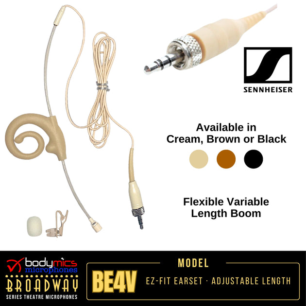 (A2) BE4V-SE Sennheiser Ezi-Fit Earset - Soft ear hook, flex "unbreakable" boom slides thru earhook - choose color