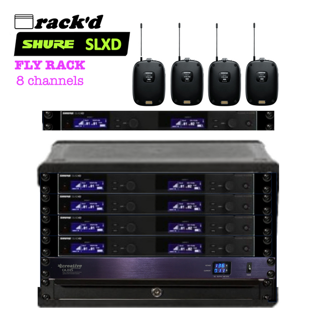 (C41) .8ch Rack'd Fly Shure SLXD 8 Channel Ready to Use Wireless System - just 2 antennas in an SKB Rack in a Case