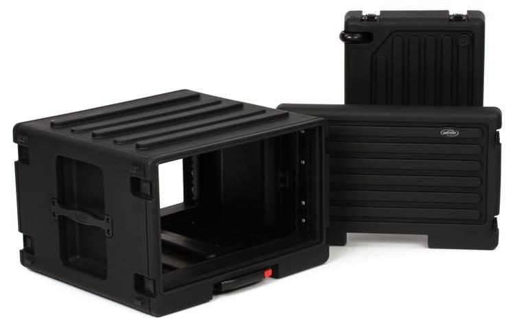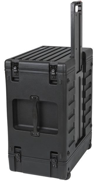 SKB has made outstanding upgrades to their already-stellar Roto cases. This new design includes a one-touch pull handle and back-lid mounted wheels that make the long walk to the show easy. The exteriors have also been modified, making these new Roto Rolling Racks stackable with existing standard and shallow racks. In addition, these new racks feature four military grade butterfly latches that secure each lid with an internal rubber gasket for waterproof protection of your gear. Gigging musicians and live sound engineers at Sweetwater trust SKB Roto Rolling Racks to protect their mixers, outboard processors, DJ rigs, and much more.
