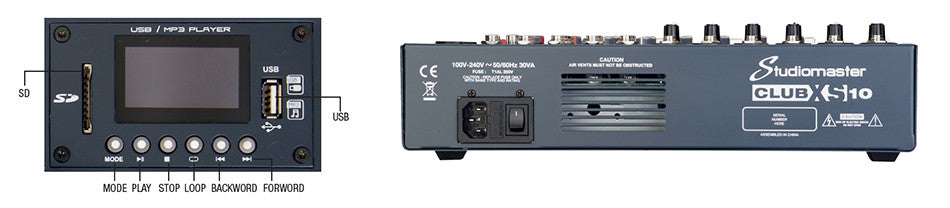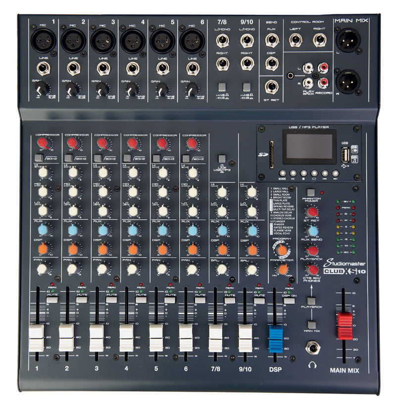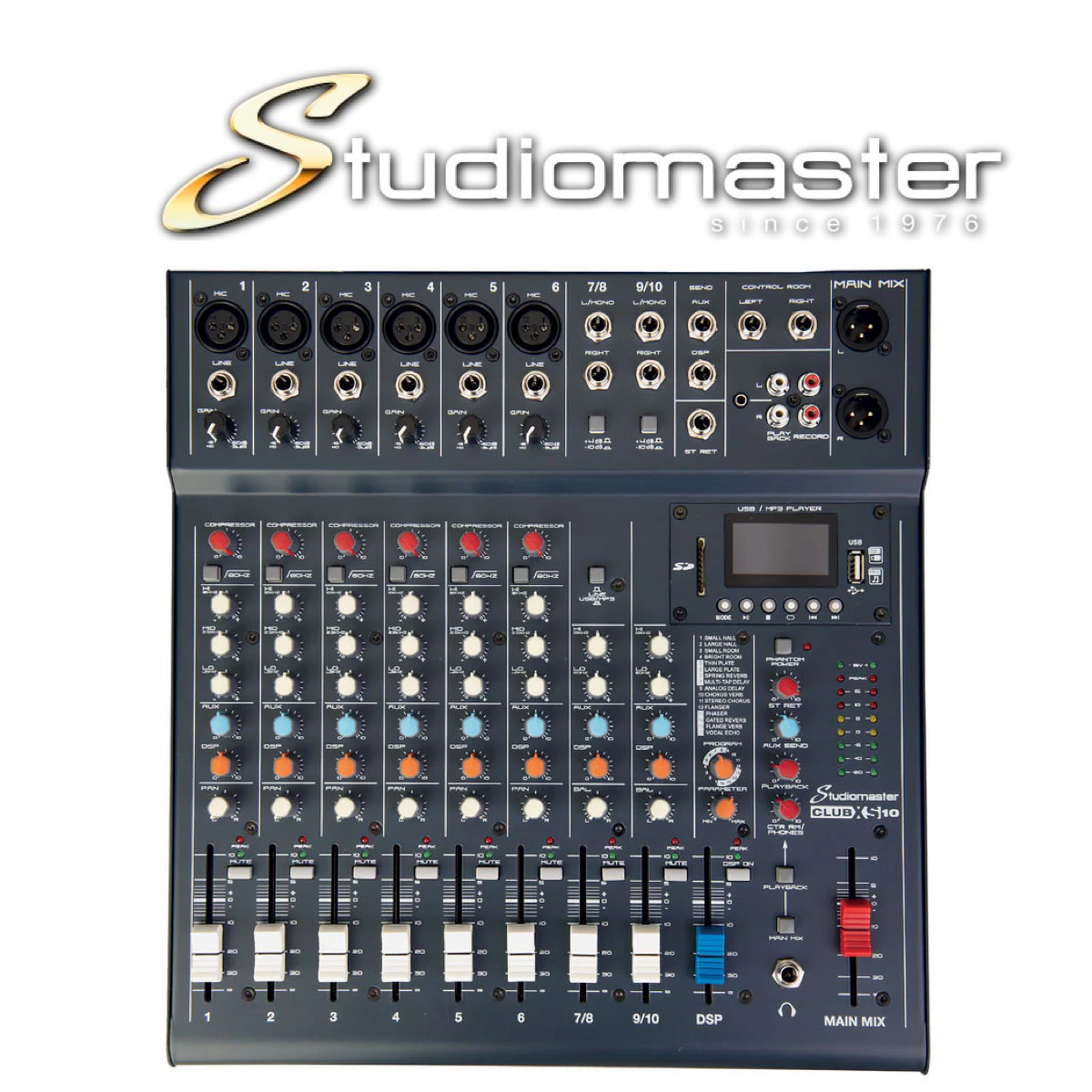 (E34) Club XS 10 - Studiomaster 6 mic channels, 2 stereo, MP3 Player, Compressors (Mixer)