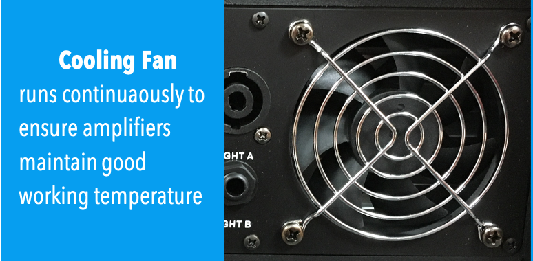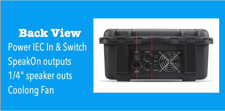 - speakon and 1/4" speaker outputs (min 4 ohm per channel)