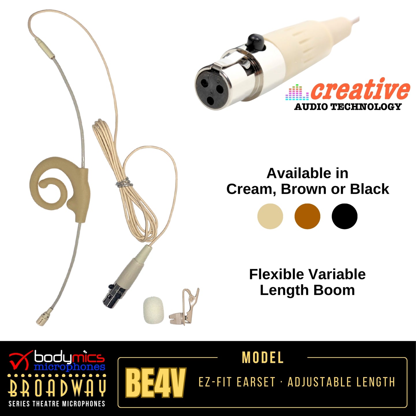 (A2) BE4V-CA for Creative Audio 3/16" Omni Flexible Adjustable Length Boom Earset Mic - Cream or Black Fixed Cable (Bodymics Broadway)