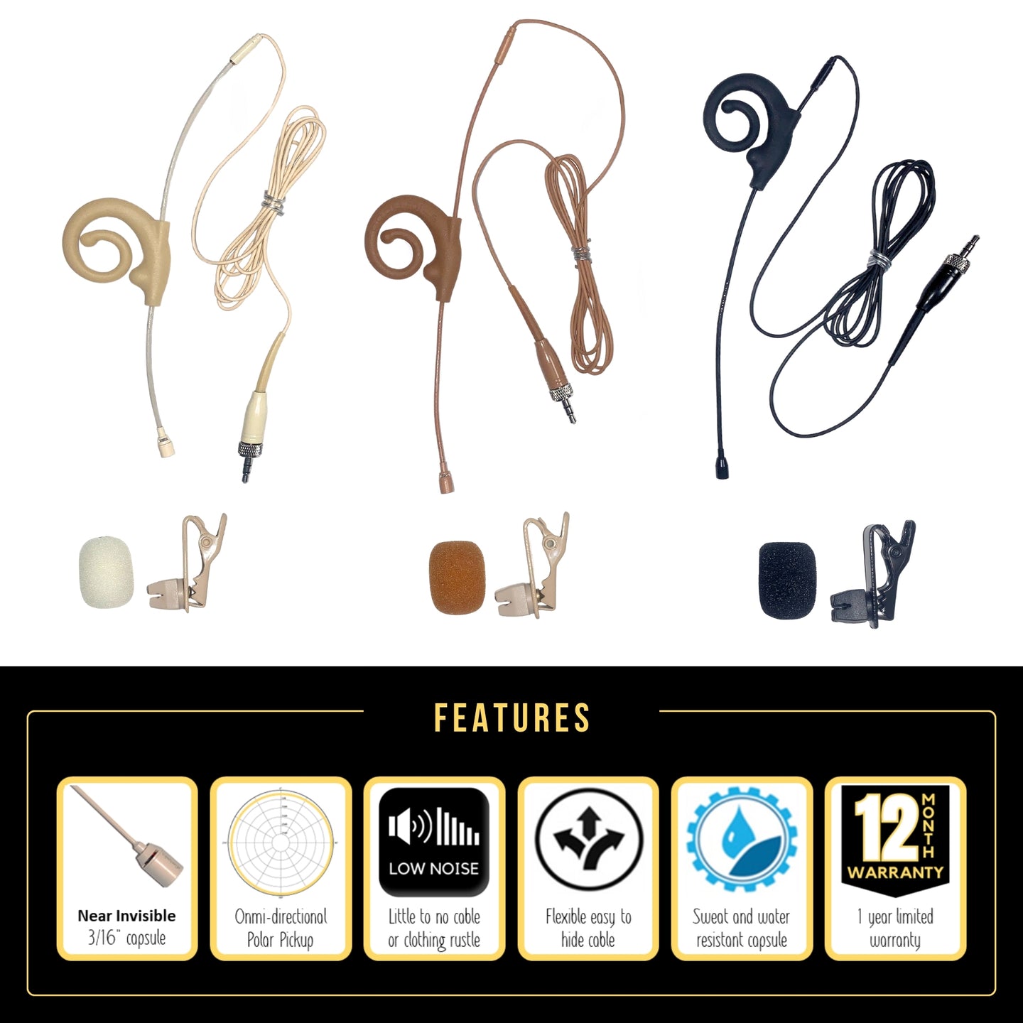 (A2) BE4V-SE Sennheiser Ezi-Fit Earset - Soft ear hook, flex "unbreakable" boom slides thru earhook - choose color