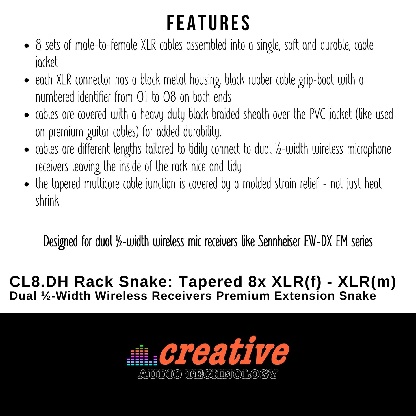 8 sets of male-to-female XLR cables assembled into a single, soft and durable, cable jacket