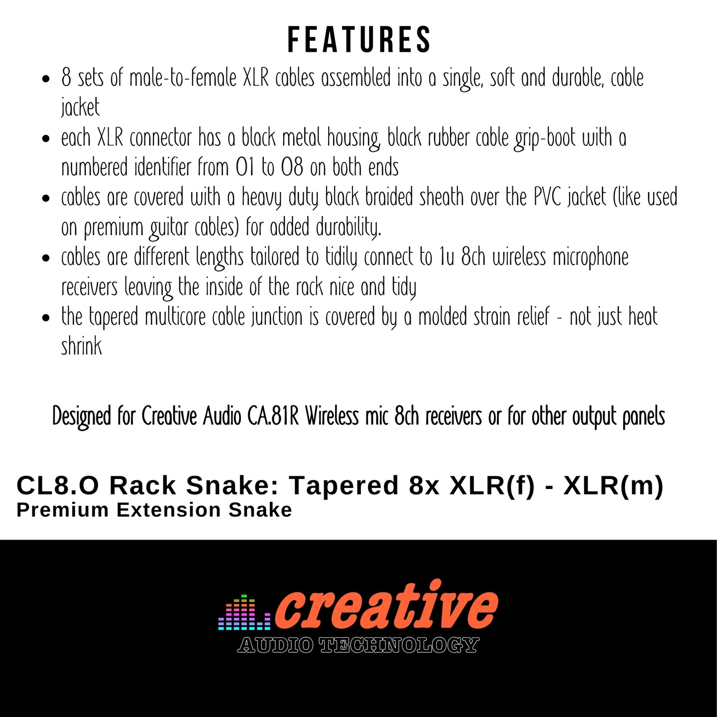 Designed for Creative Audio CA.41R Wireless mic 4ch receivers or for other output panels.