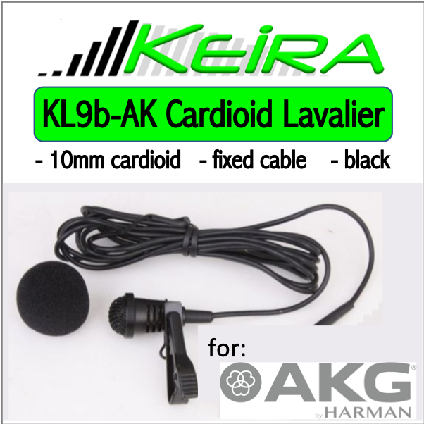 (A1) KL9b Cardioid Lavalier Lapel Microphone Black - most wireless including AKG, Sennheiser, Shure (Bodymics Keira) was KL10b