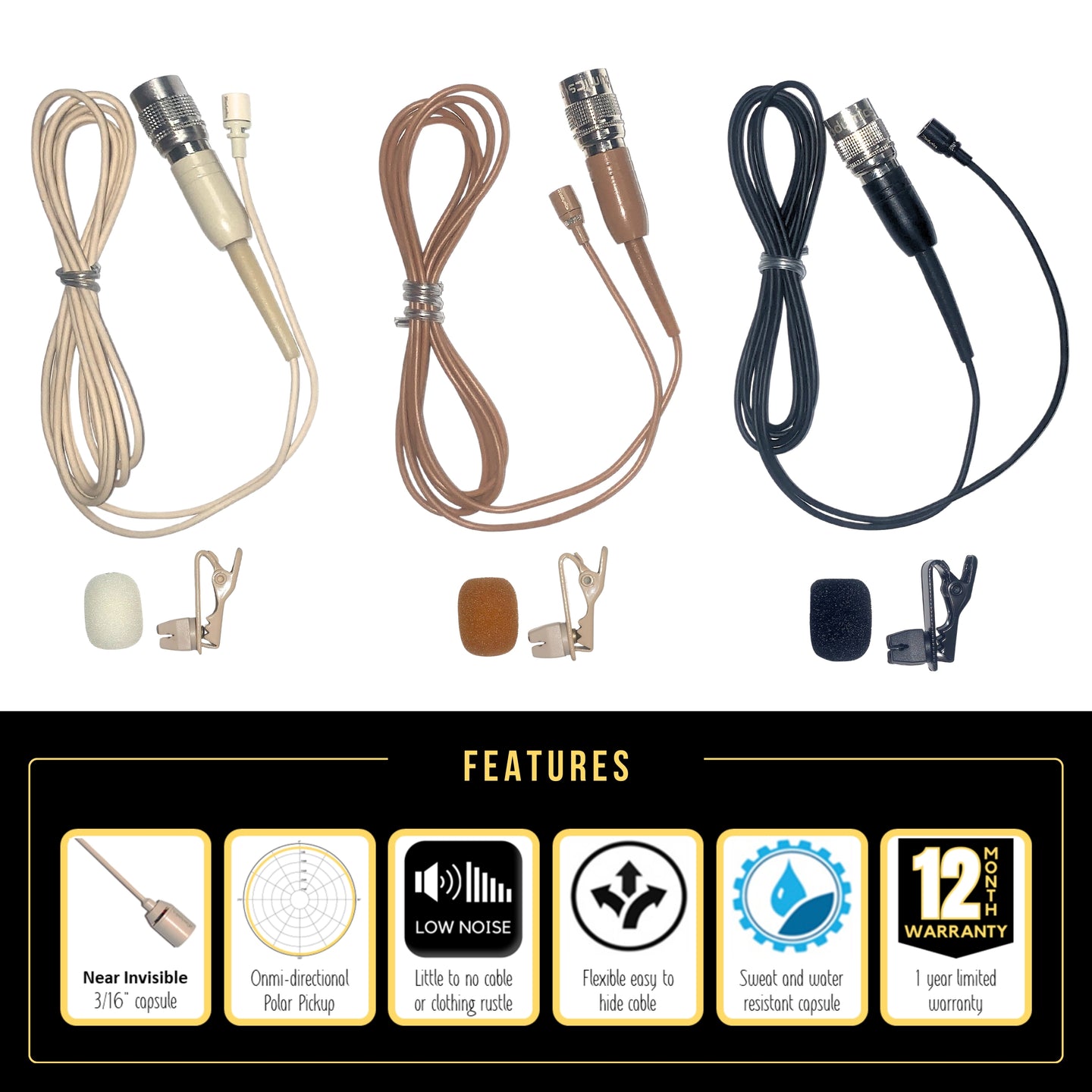 use either as a lav, a hairline/wig mic or over the ear and tape to the cheek
