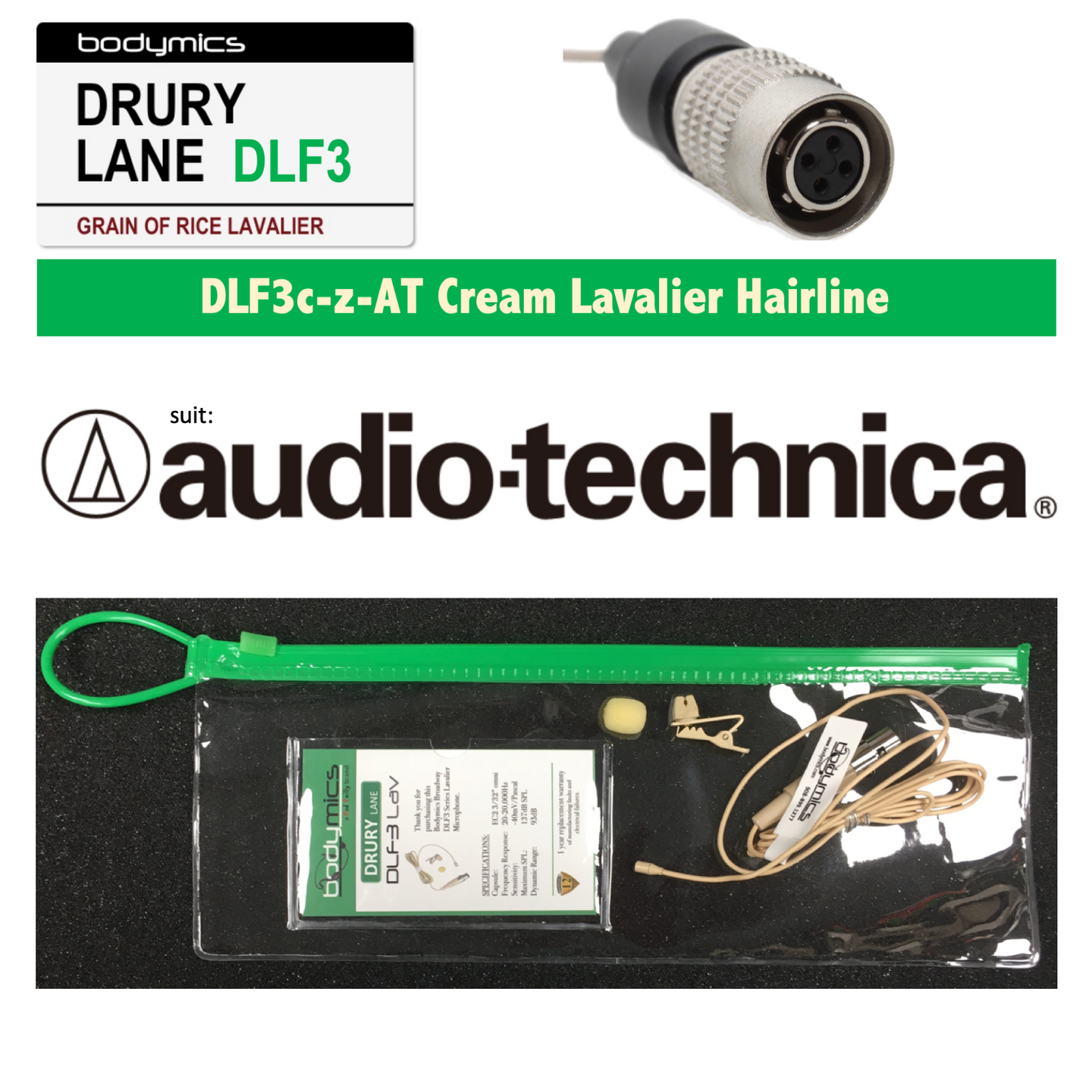 (A1) DLF3-ATcW 1/10" Omni Lavalier Mic Face, Hair, Body, Wig - Cream or Black for Audio-Technica