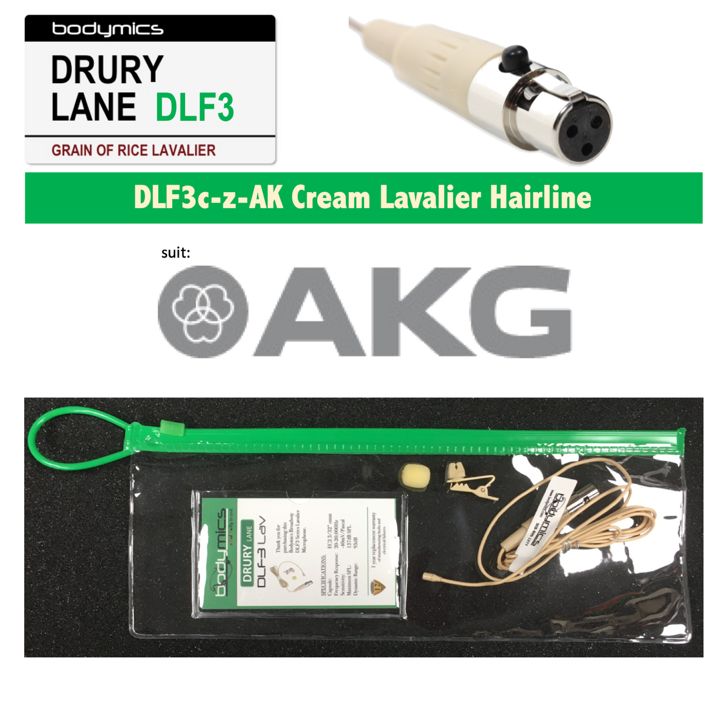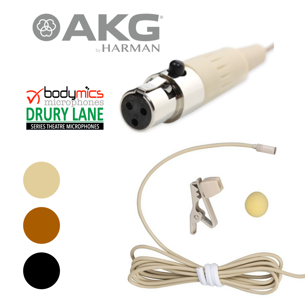 (A1) DLF3-AK 1/10" Omni Lavalier Mic Face, Hair, Body, Wig - Cream or Black for AKG