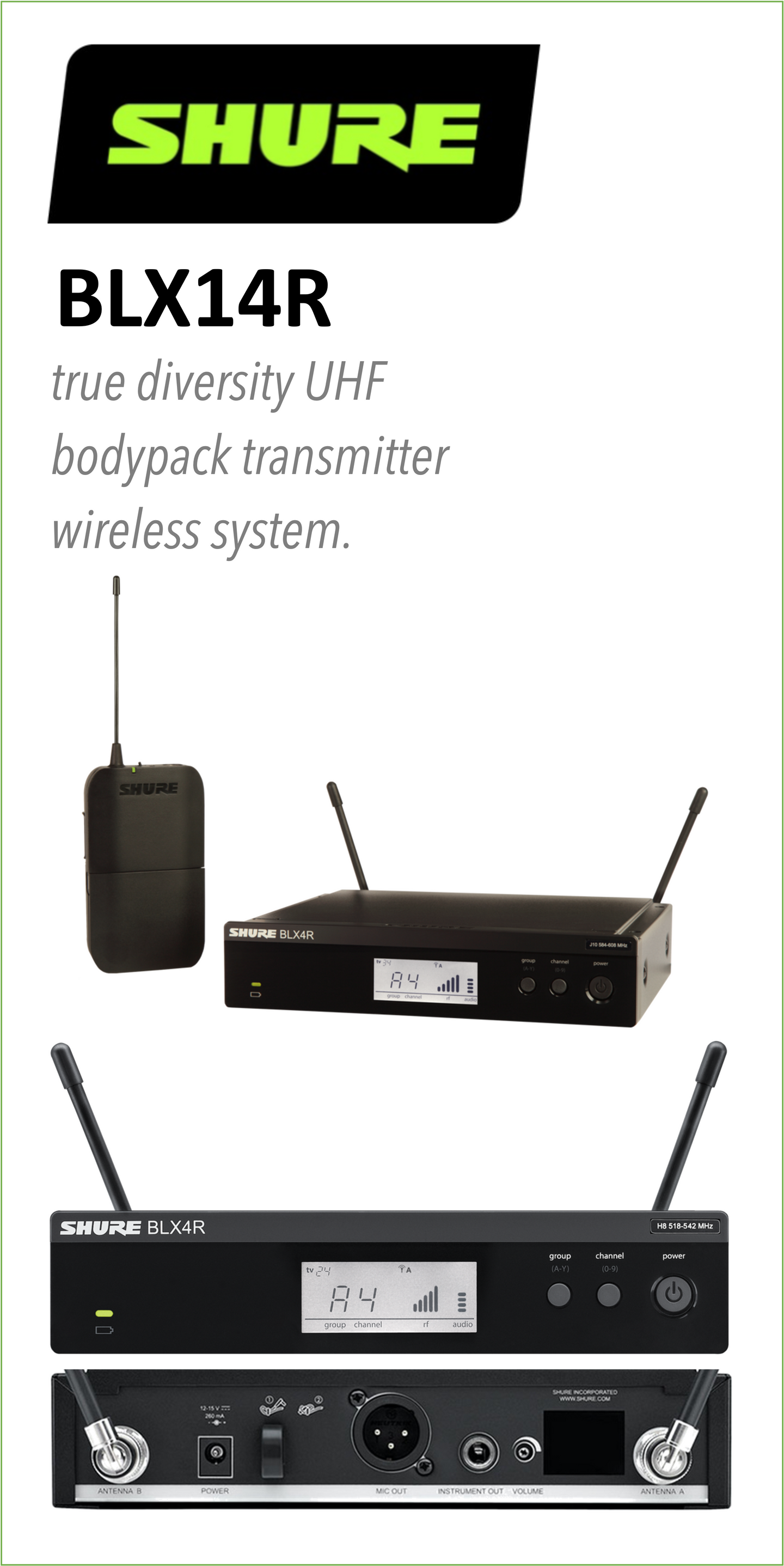 Shure BLX14R Single-Channel Bodypack Wireless System no mic (H9: 512 to 542 MHz)