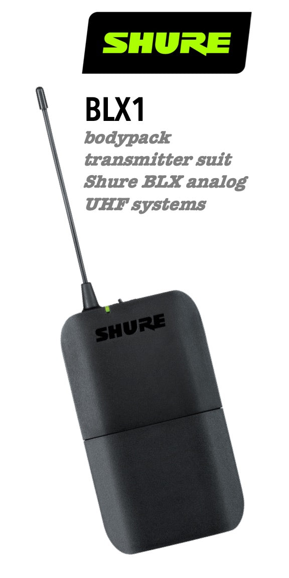 • The BLX1 transmitter is powered by two included AA batteries and runs for up to 14 hours.