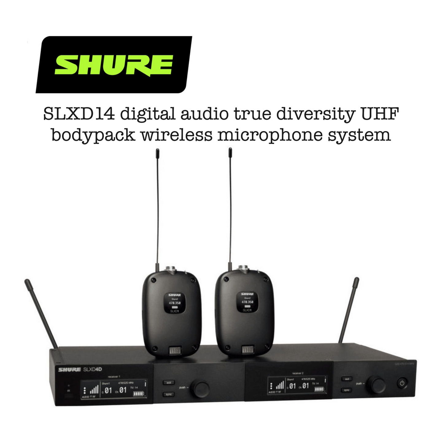 Looking for a 2-channel wireless system? You've come to the right place. The Shure SLXD14D Wireless system ships to your door with two SLXD1 Bodypack transmitters and the Shure SLXD4D Digital Wireless Receiver. Shure's cutting edge digital wireless technology delivers 24-bit audio resolution with an almost imperceptible 3.2ms of latency. Add in the working range of 100 meters (328 feet), and you've got a recipe for serious wireless potential. If you're ready to take the plunge and give your system a much-needed upgrade, you can't go wrong with a Shure SLX-D wireless setup.