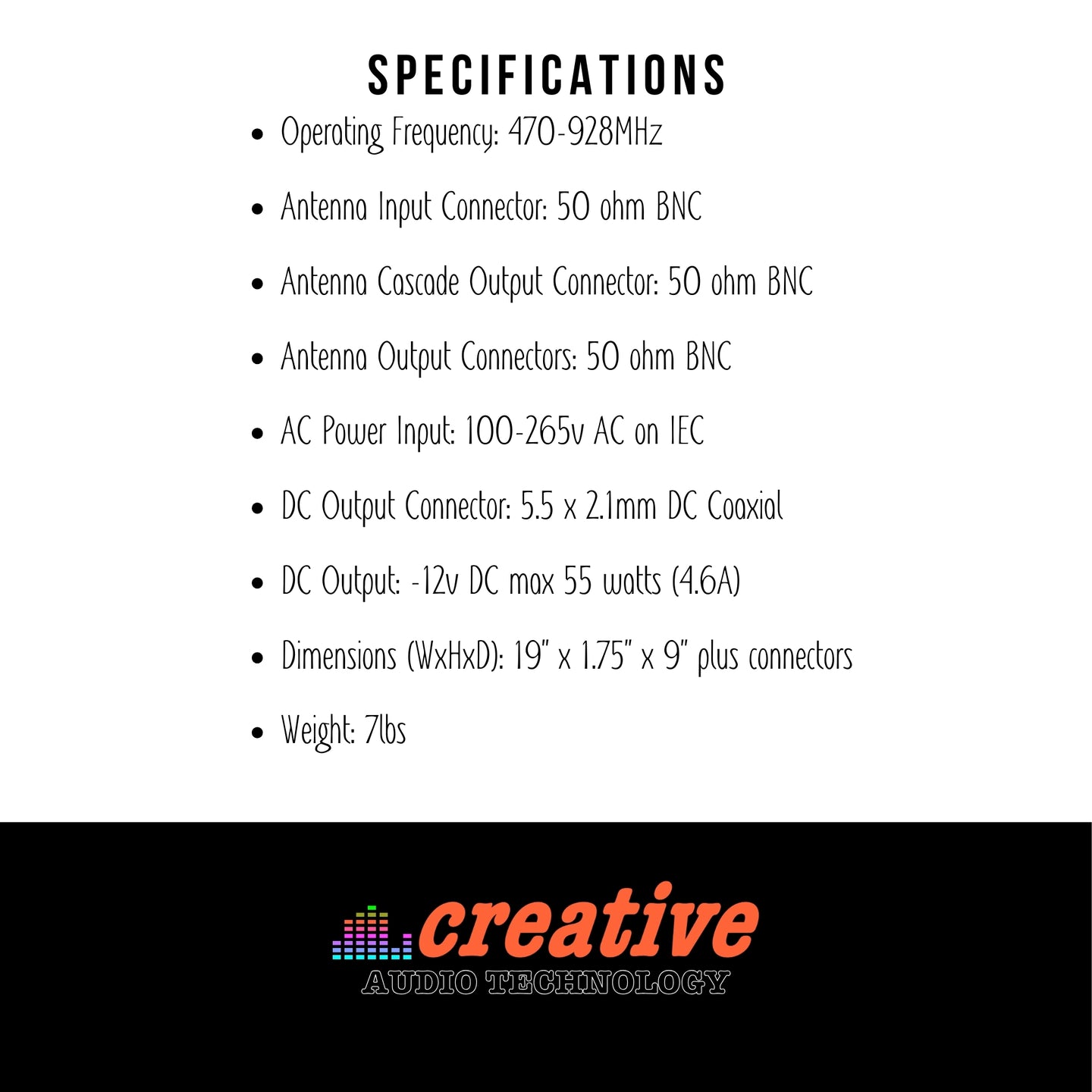 Antenna Input Connector: 50 ohm BNC