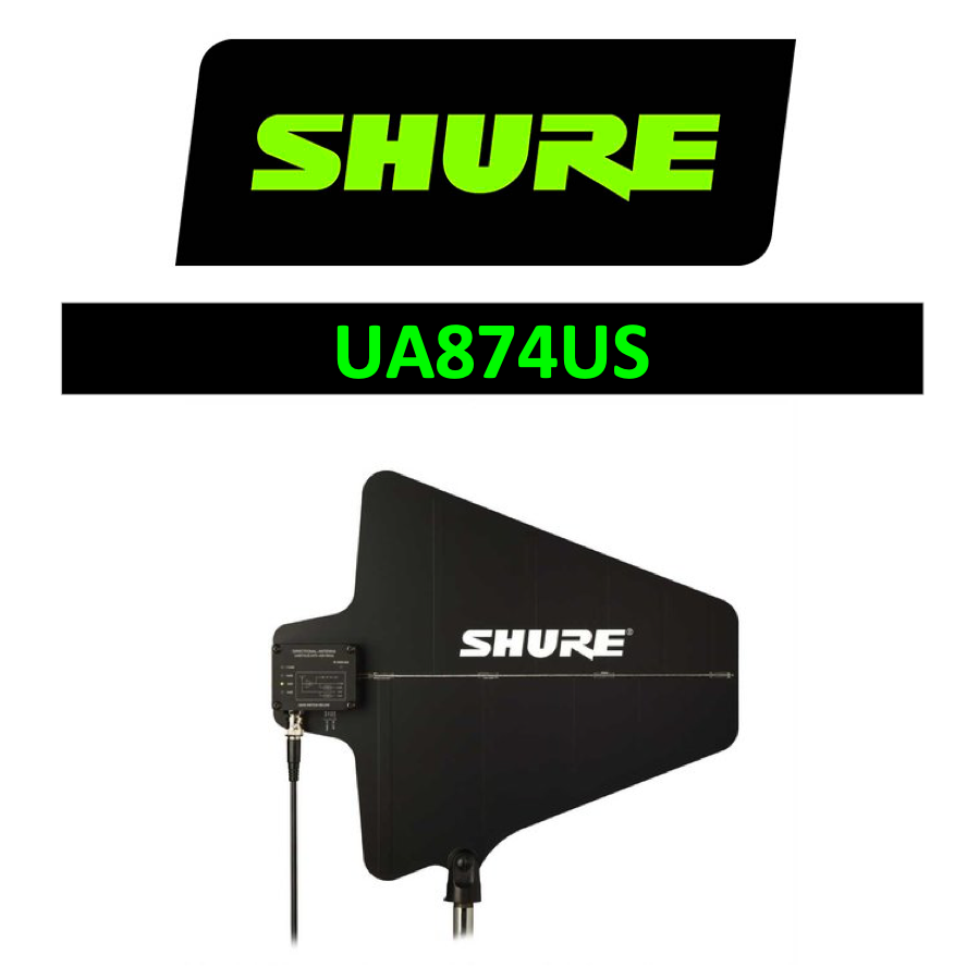 Now you can experience improved wireless reception with Shure's UA874 Antenna. It's a UHF antenna that uses a log periodic dipole array to form a cardioid receiving pattern toward the desired coverage area, achieving greater rejection of RF signals outside the area than standard ½-wave omnidirectional antennas.