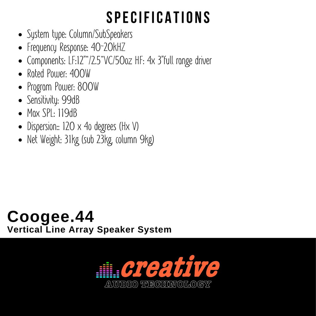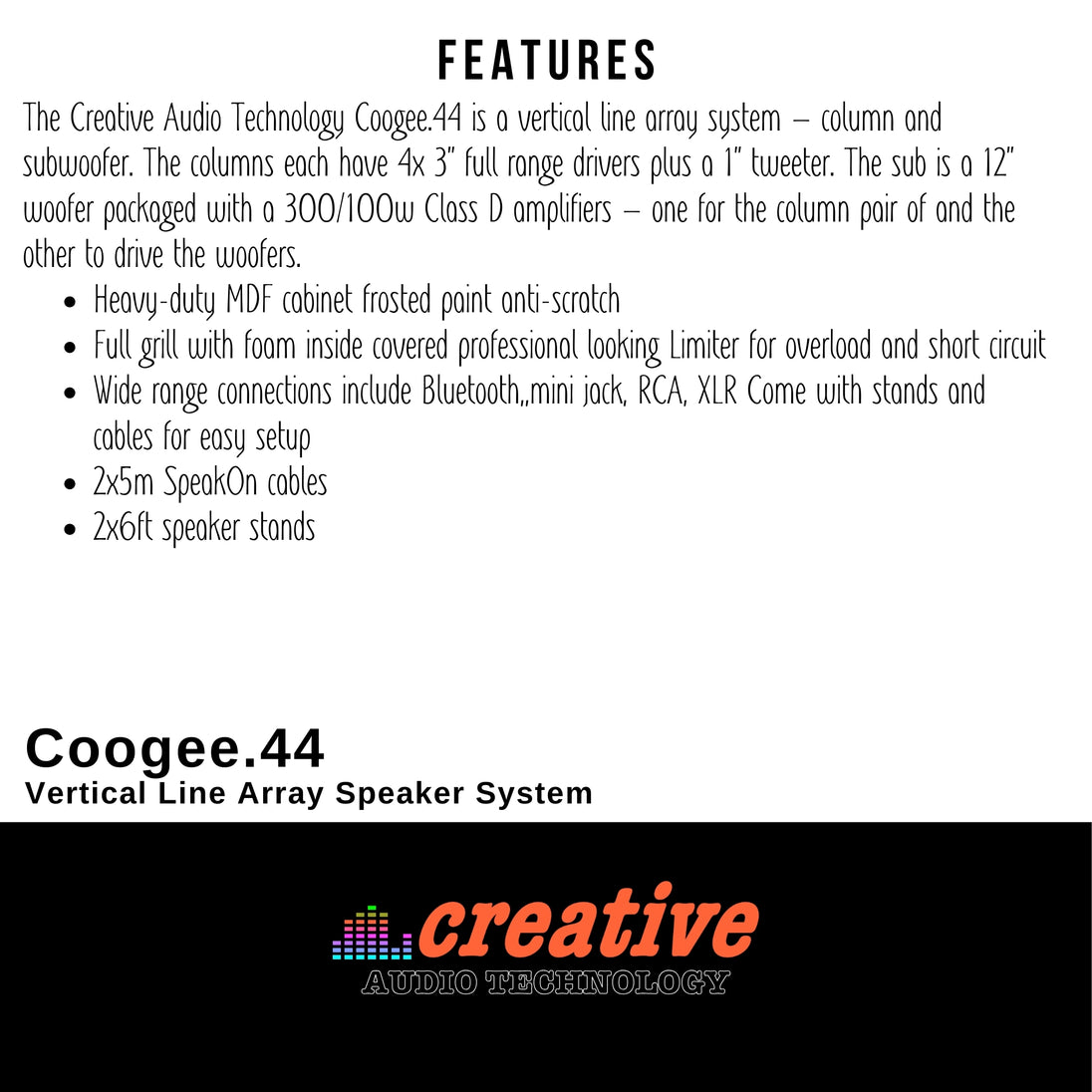 (J1) CA Coogee.44 Creative Audio Active Vertical Line Array - 2x 4x3"fullrange column & 12" sub