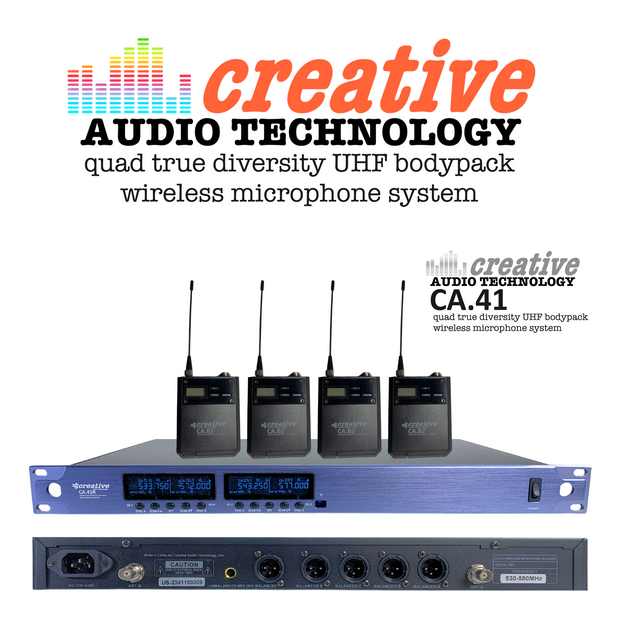 Vendor: Creative Audio (C2) CA.41BB - 4 ch Wireless Microphone System - 1u receiver-4 bodypack transmitters (Creative Audio) Sale price $ 899.00Regular price $ 999.00