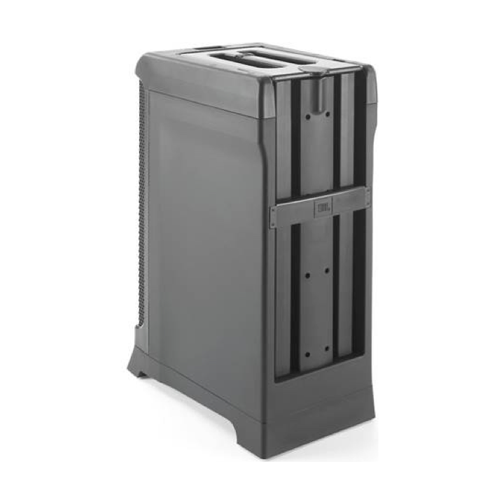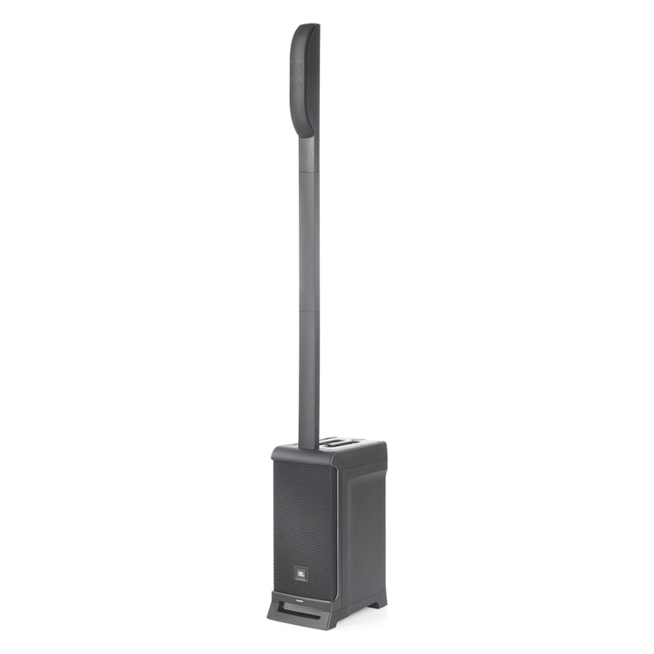 - base unit includes 8" woofer in bass reflex enclosure, 1300-watt amplifier, 3-channel mixer, and storage slots for speaker array and spacers