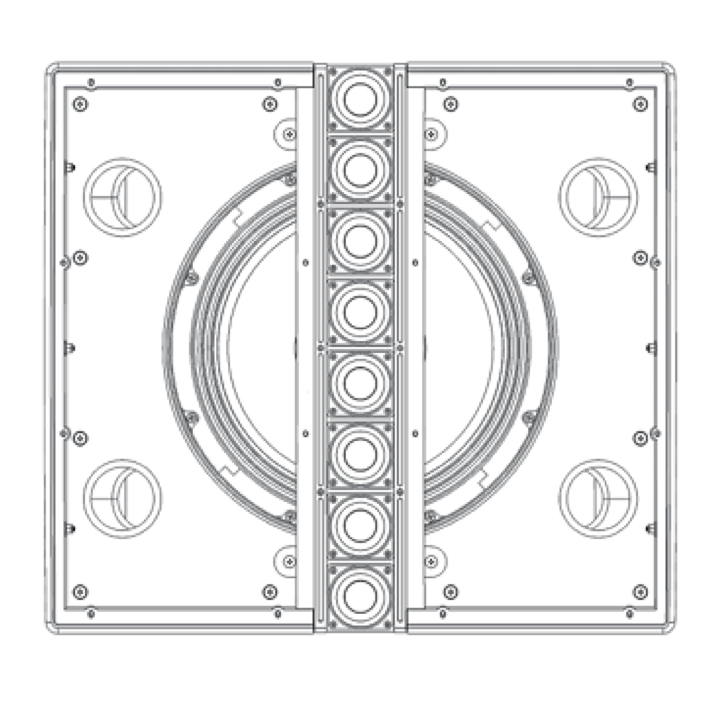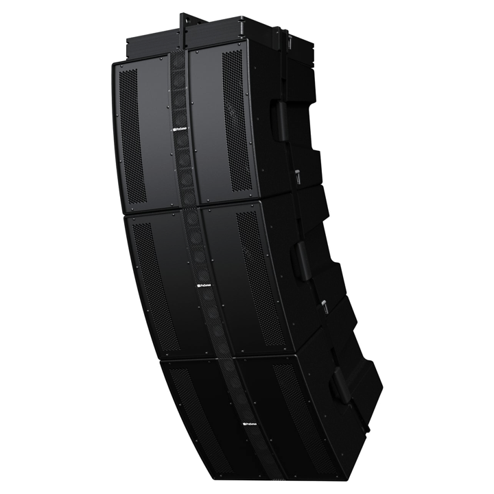 - Continuous-directivity constant curve array with eight 2-inch cone drivers disperses sound 120° horizontally
