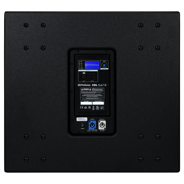 A terrific complement for any full-range loudspeaker and the perfect companion for PreSonus® CDL-series loudspeakers, the CDL Sub18 Active Subwoofer delivers tight, coherent low-end, driven by an integrated 2,000-watt Class D power amp, and features a unique ported design that maximizes efficiency. Its powerful, articulate sub-bass performance and compact design make the CDL Sub18 a great choice for installed and mobile sound.