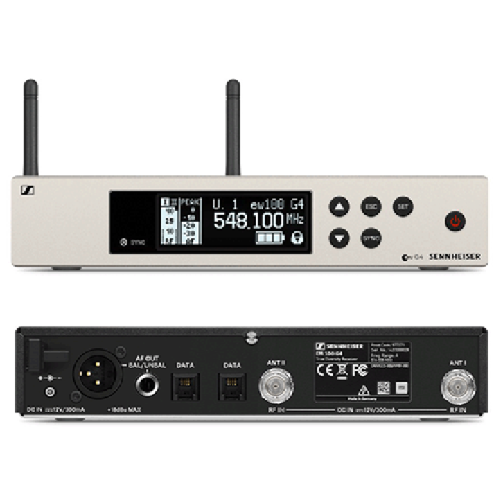 To prevent interference, the EM 100 receiver's true-diversity reception compares incoming signals on two independent receiver circuits to ensure optimal RF quality. To ensure crystal clear audio, Sennheiser's proprietary HDX compander technology maximizes the microphone's signal-to-noise ratio, while avoiding RF noise.